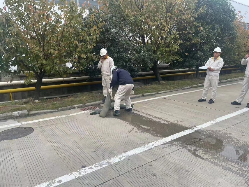 演練過程中,各科室成員表現(xiàn)出了高度的協(xié)作精神和專業(yè)素養(yǎng),他們按照預(yù)定的應(yīng)急流程,有序地進(jìn)行著各項操作。從泄漏源頭的控制,污染地面的清理,到雨水管道的封鎖和清洗,每一個環(huán)節(jié)按照規(guī)定動作,認(rèn)真完成各自的任務(wù)。