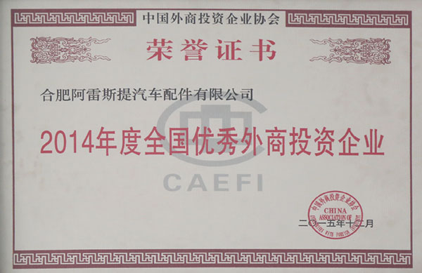 2014年度全國優(yōu)秀外商投資企業(yè)
